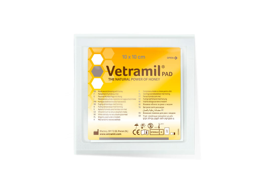 Το Vetramil Pad έχει σχεδιαστεί για να βοηθά στην αποκατάσταση δερματικών παθήσεων σε ζώα. Το Vetramil Pad αποτελείται από φυσικές ίνες κυτταρίνης οι οποίες απορροφούν καλά το έκκριμα του τραύματος. Η εξωτερική του στρώση είναι διαπερατή και μεταφέρει την υγρασία στην εσωτερική απορροφητική στρώση. Οι ίνες βισκόζης μπορούν να απορροφήσουν την υγρασία και να τη συγκρατήσουν ανάμεσα στα δύο στρώματα. Το Vetramil Pad είναι εμποτισμένο με μικρή ποσότητα σκευάσματος με βάση το μέλι, που εξυπηρετεί τη δημιουργία υγρού περιβάλλοντος. Ένα υγρό περιβάλλον διευκολύνει την αποκατάσταση του δέρματος.